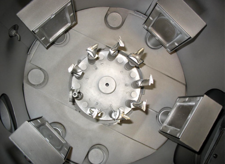 На НФМЗ нанесение напыления на лопатки проводится на установке отечественного производства. Иллюстрация: ОДК