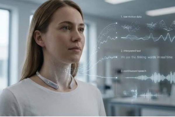 Система считывает микродвижения на шее, распознаёт слова с помощью ИИ и синтезирует речь, включая индивидуальные особенности голоса