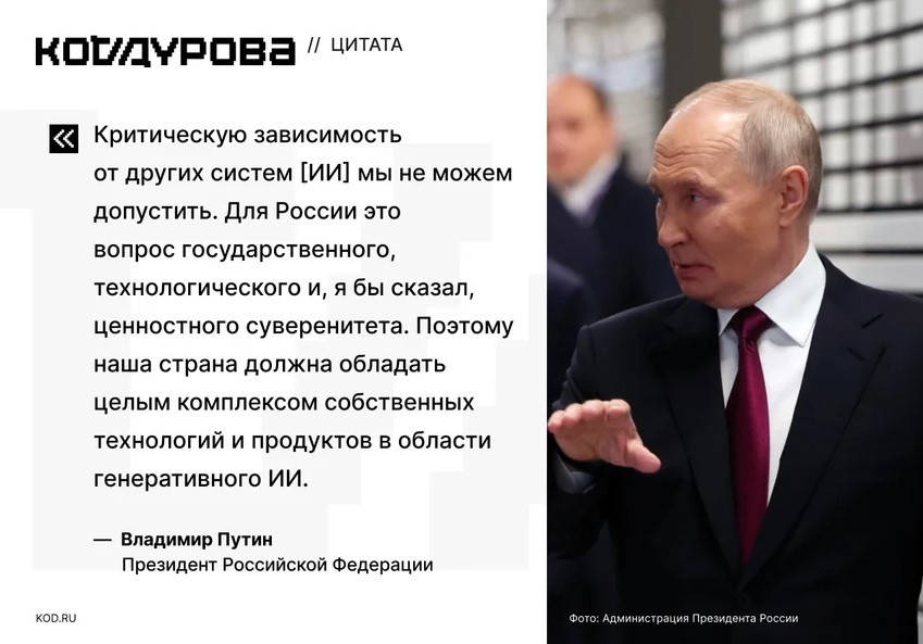 На конференции AI Journey 2025 «Путешествие в мир ИИ» Владимир Путин заявил, что России должна обладать собственными технологиями в сфере ИИ.