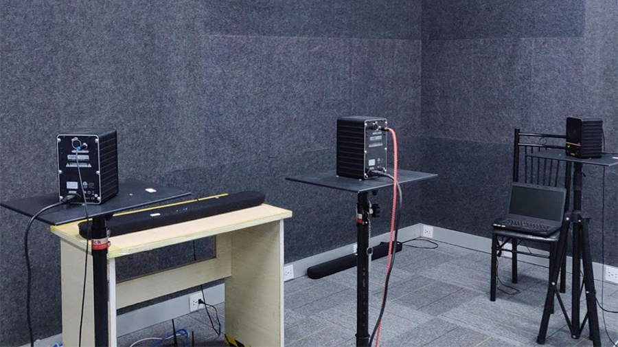 В данном видео показан неплохой пример автоматизированных функциональных тестов умной колонки в полу-безэховой комнате (на производстве тестирование происходит подобным образом):