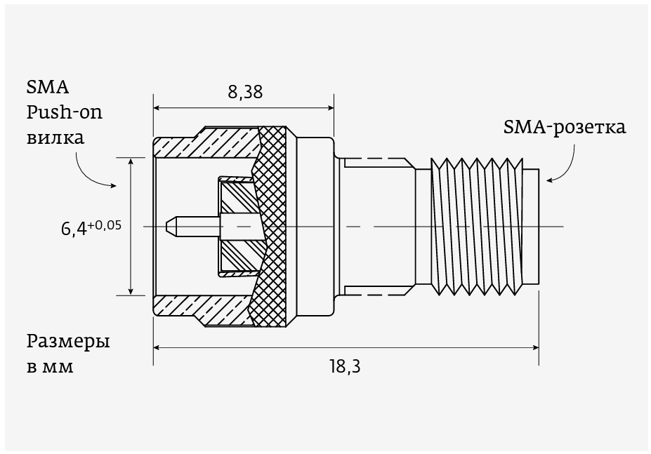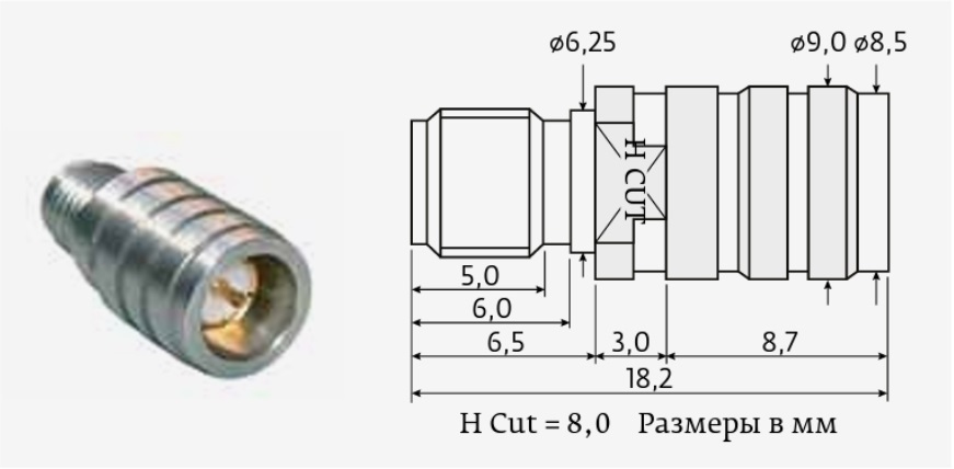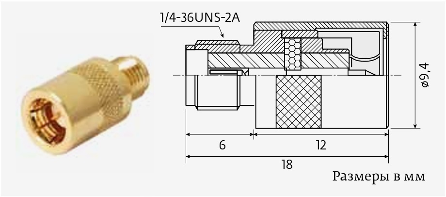 Параметры адаптера: волновое сопротивление 50 Ом, диапазон рабочих частот 0–18 ГГц.