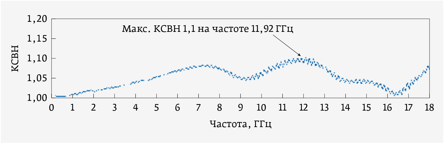- максимальный КСВН в диапазоне частот 0–18 ГГц: 1,15; в диапазоне частот 18–26,5 ГГц: 1,2;