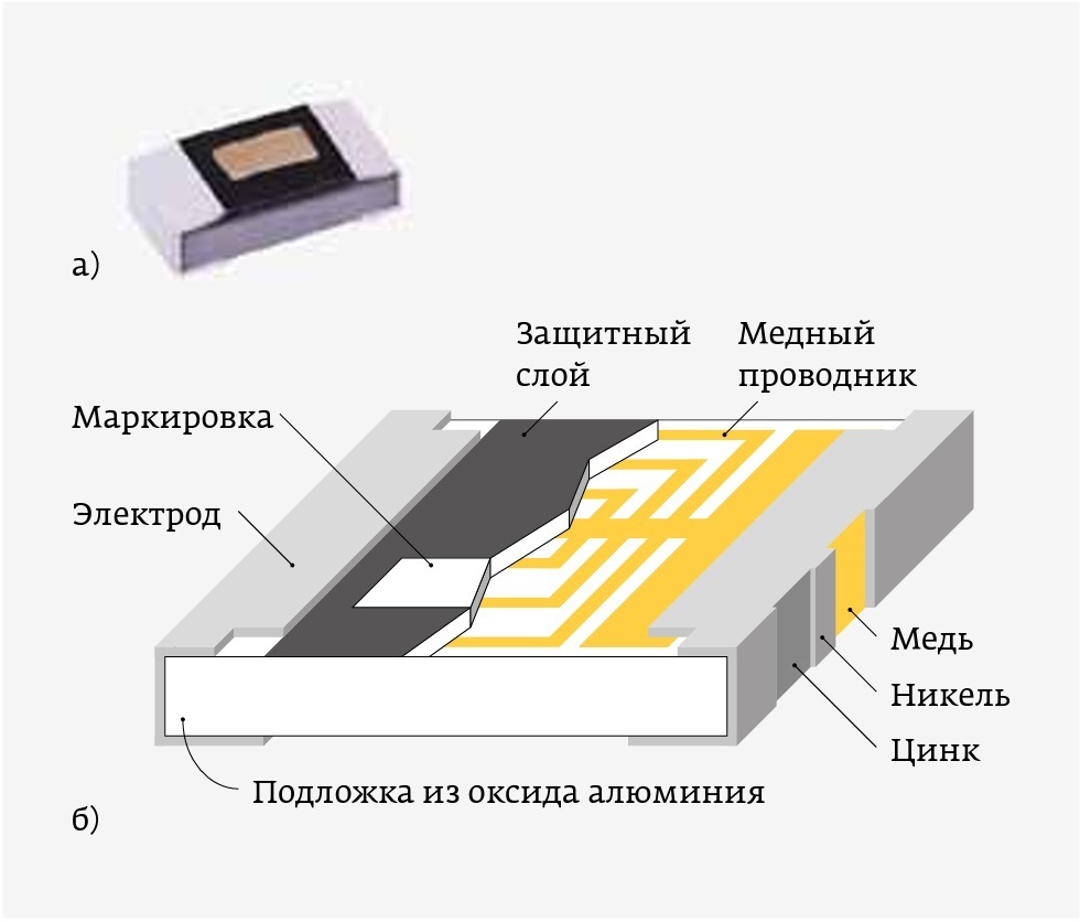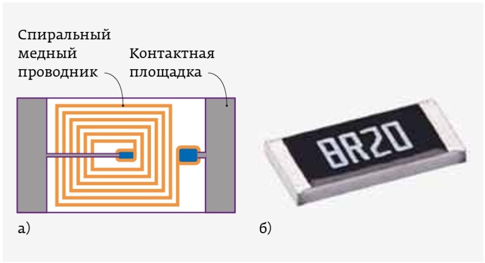 Рис. 14. Внешний вид (а) и конструкция (б) пленочной индуктивности компании Abracon