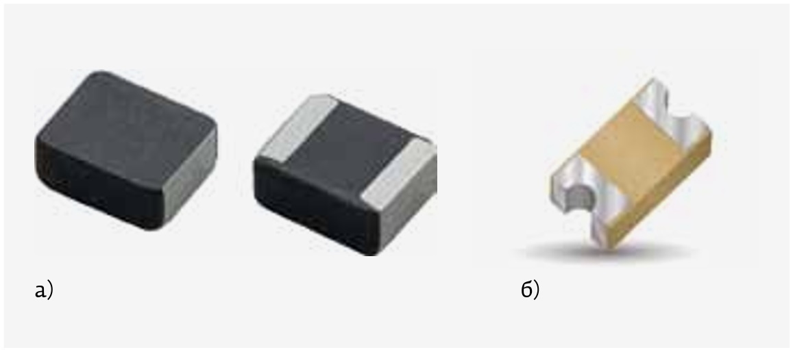 Рис. 19. Индуктивности одного типа разных производителей: а – индуктивность для больших токов компании Coilmaster Electronics Co. серии ML322510HE; б – индуктивность для больших токов серии MLO компании AVX