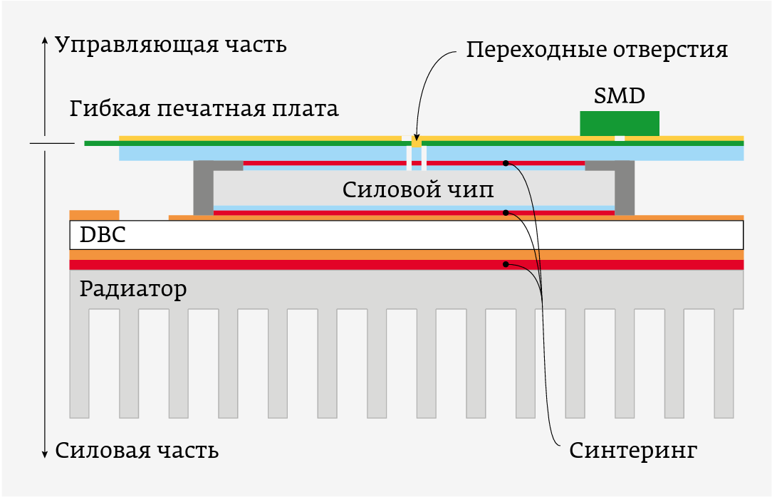 Рис. 7. Конструкция силового модуля на основе карбида кремния
