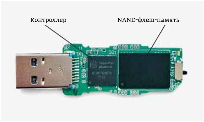 USB-флеш-накопители состоят из двух основных микросхем, обеспечивающих надежность и сохранность информации, – контроллер и память типа NAND (рис. 1).