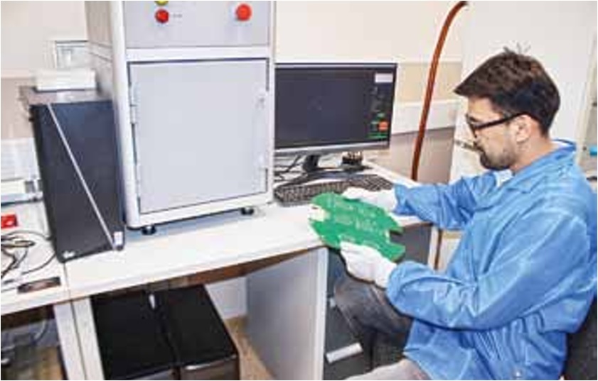 Второй этап – контроль внешнего вида печатных плат (рис. 1). Плата проходит контроль по внешнему виду после каждой технологической процедуры. При выявлении дефектов плата не допускается к следующим этапам производства. Кроме контроля внешнего вида, заготовка проходит электроконтроль. Такой подход позволяет фиксировать и исправлять нарушения еще на стадии производства в АО «ТЕСТПРИБОР», что существенно повышает качество плат как в процессе производства, так и при предъявлении заказчику.